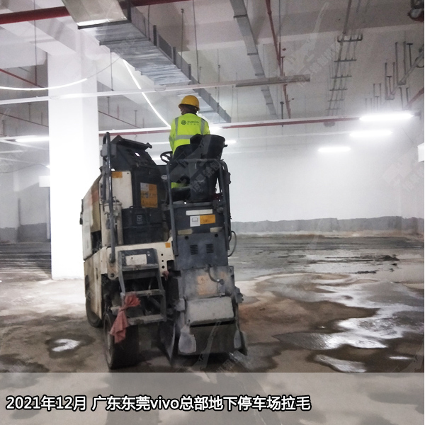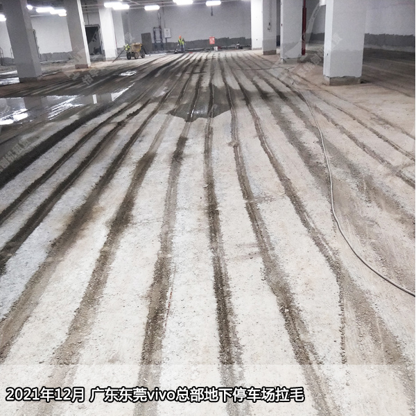 2021年12月 广东东莞vivo总部地下停车场地坪拉毛。