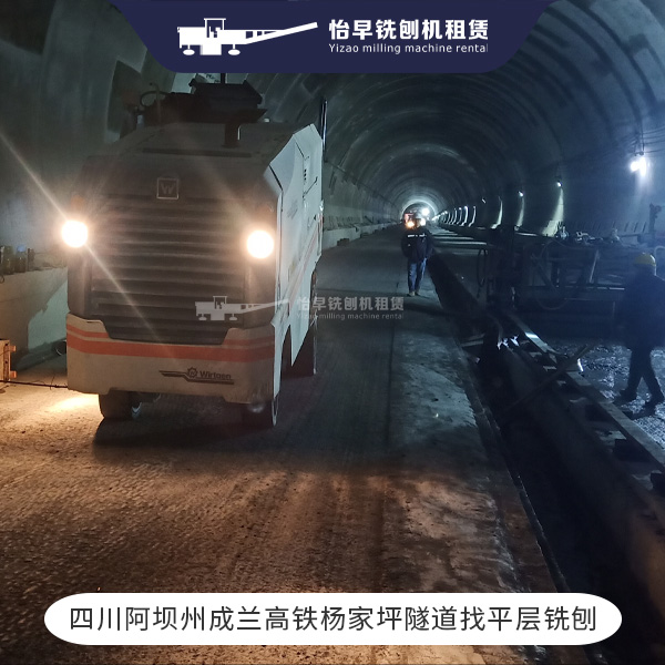 成兰铁路杨家坪隧道找平层铣刨用到是维特根1米铣刨机W130H,使用驾驶性铣刨机进行连续铣刨作业,无论从铣刨深度还是铣刨效率及平整度而言,1米铣刨机比小型手推式铣刨机有明显优势。目前杨家坪隧道找平层铣刨施工已过半,用不了多久就能铺轨通车了。