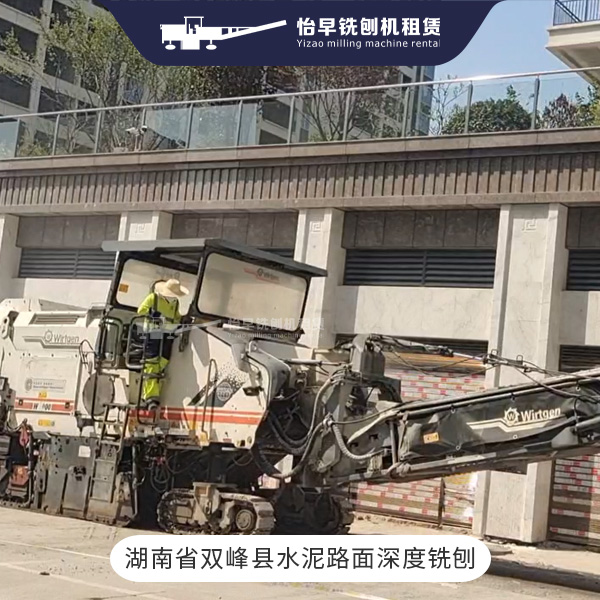 此次双峰县水泥路面深度铣刨是商铺铺路沿石之前的一个路面铣刨,铣刨深度6-10公分不等。此次用到维特根2米铣刨机W2000对路面c30水泥进行高精度、高质量铣刨,跟传统的切割加破碎的开槽方式相比,避免了后期铺完路沿石后容易松动的问题。